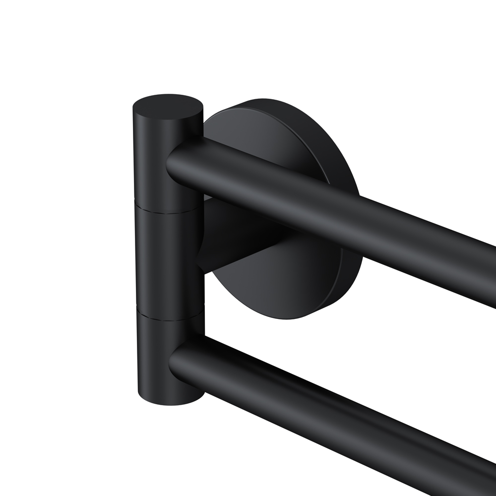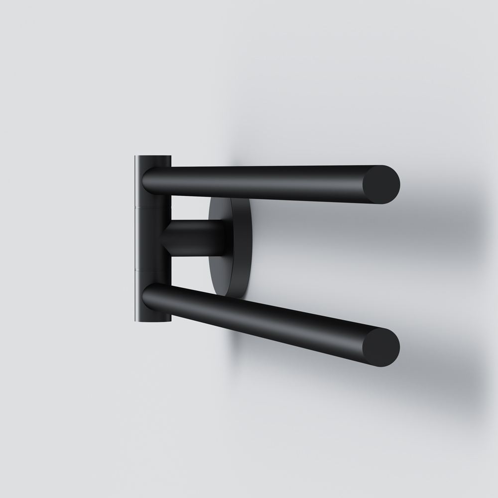 Двойная вешалка для полотенец X-Joy – незаменимый аксессуар для вашей ванной. Продукт выполнен из сплава металлов высочайшего качества с матовым черным покрытием устойчивым к механическим повреждениям.