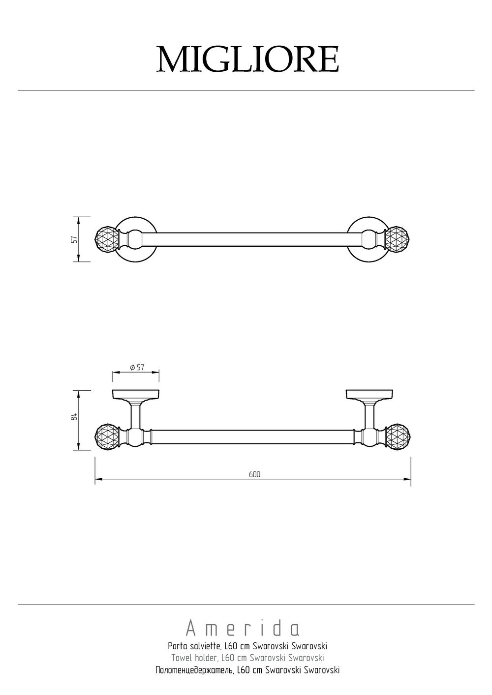 Полотенцедержатель коллекции AMERIDA бренда MIGLIORE  - функциональный аксессуар для ванной комнаты — чтобы повесить его достаточно небольшого пространства, и вы можете развернуть его держатели в одну или другую сторону в зависимости от наличия места на стене. Аксессуар украшен кристаллами Сваровски.