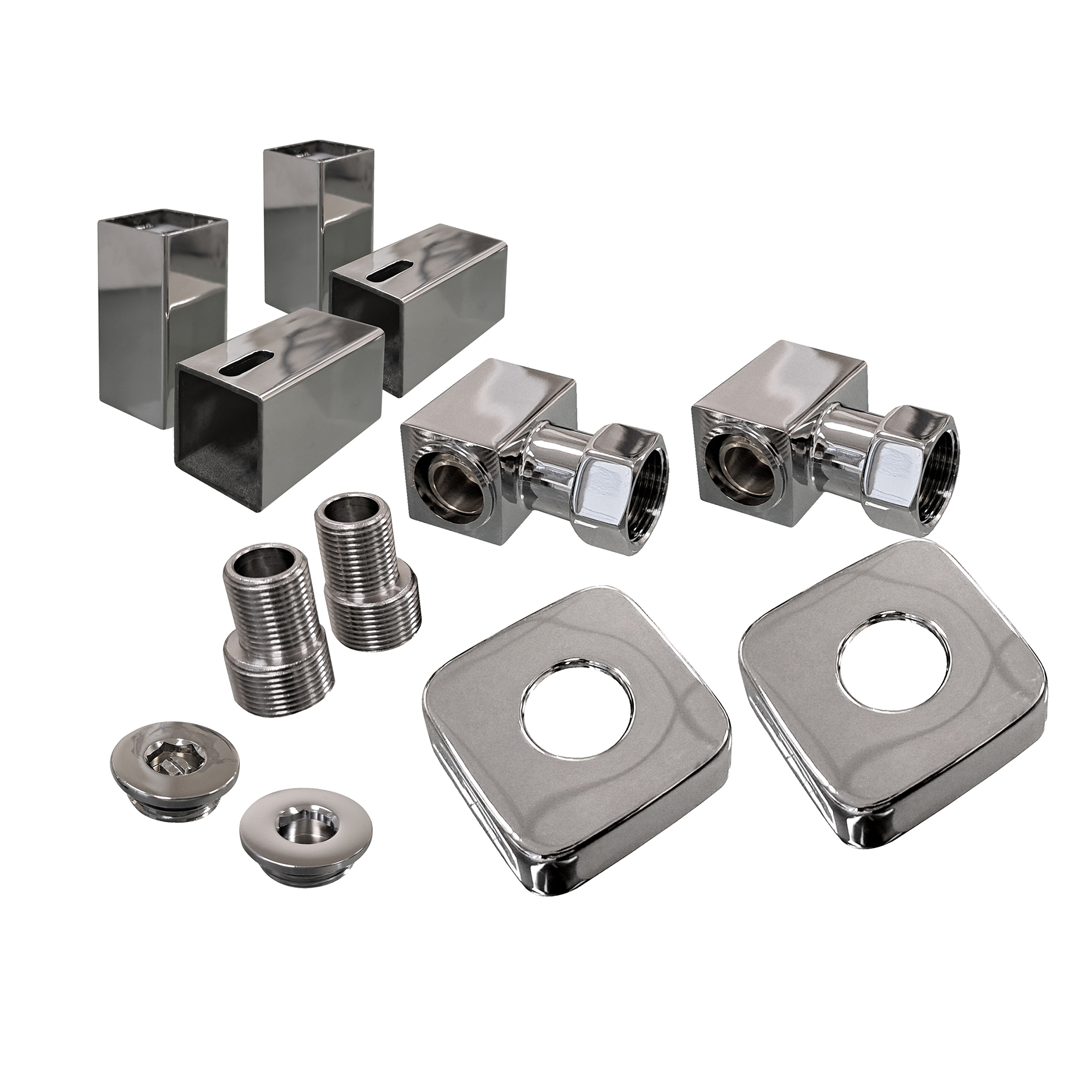 В комплектацию входит изделие, гарантийный талон, держатель 2 шт., колпаки с краном Маевского 2 шт., фитинги 2шт, и набор для монтажа.