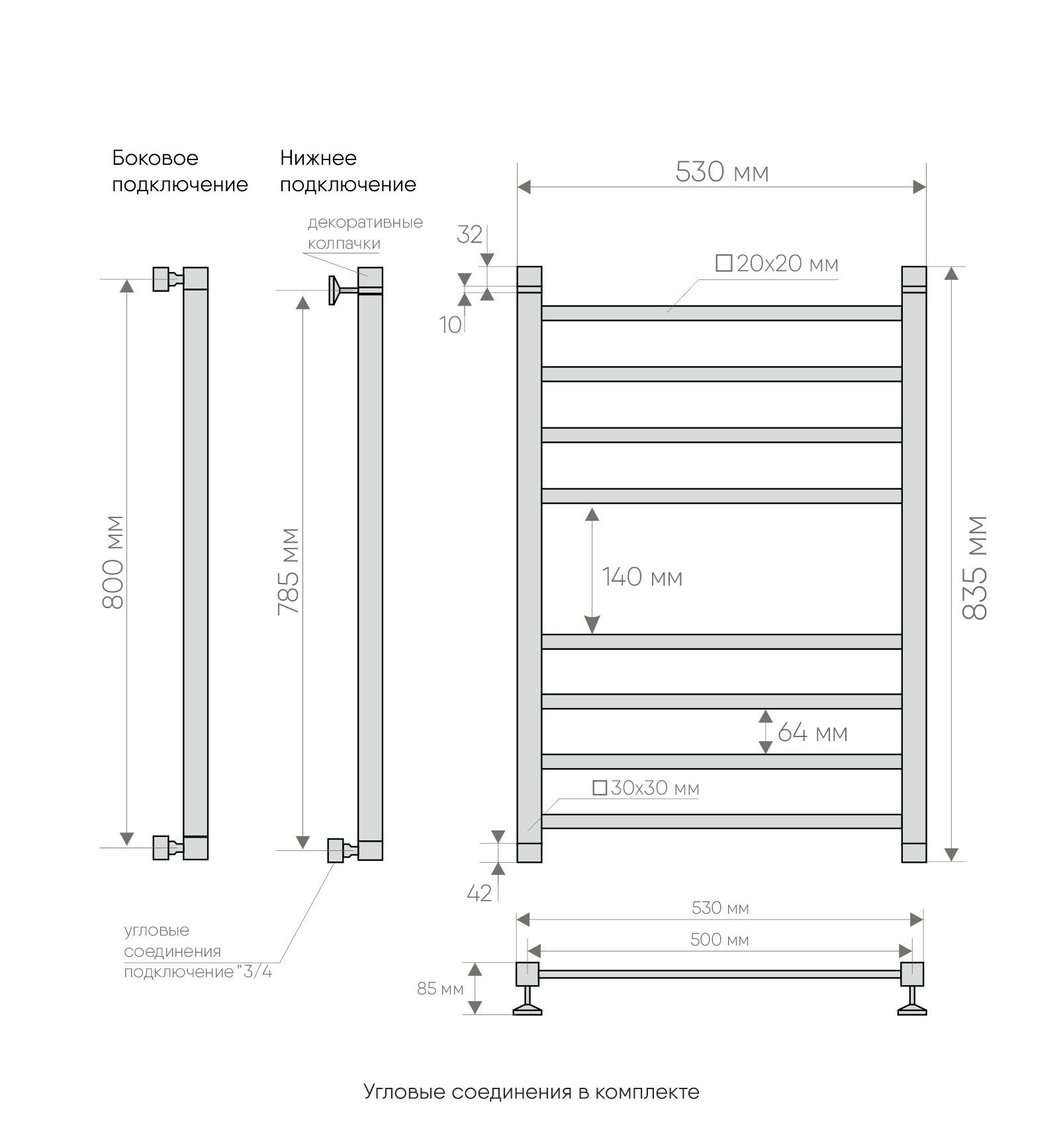Дизайн "лесенка" с квадратными коллекторами и плоскими перекладинами добавит современный акцент в интерьер.