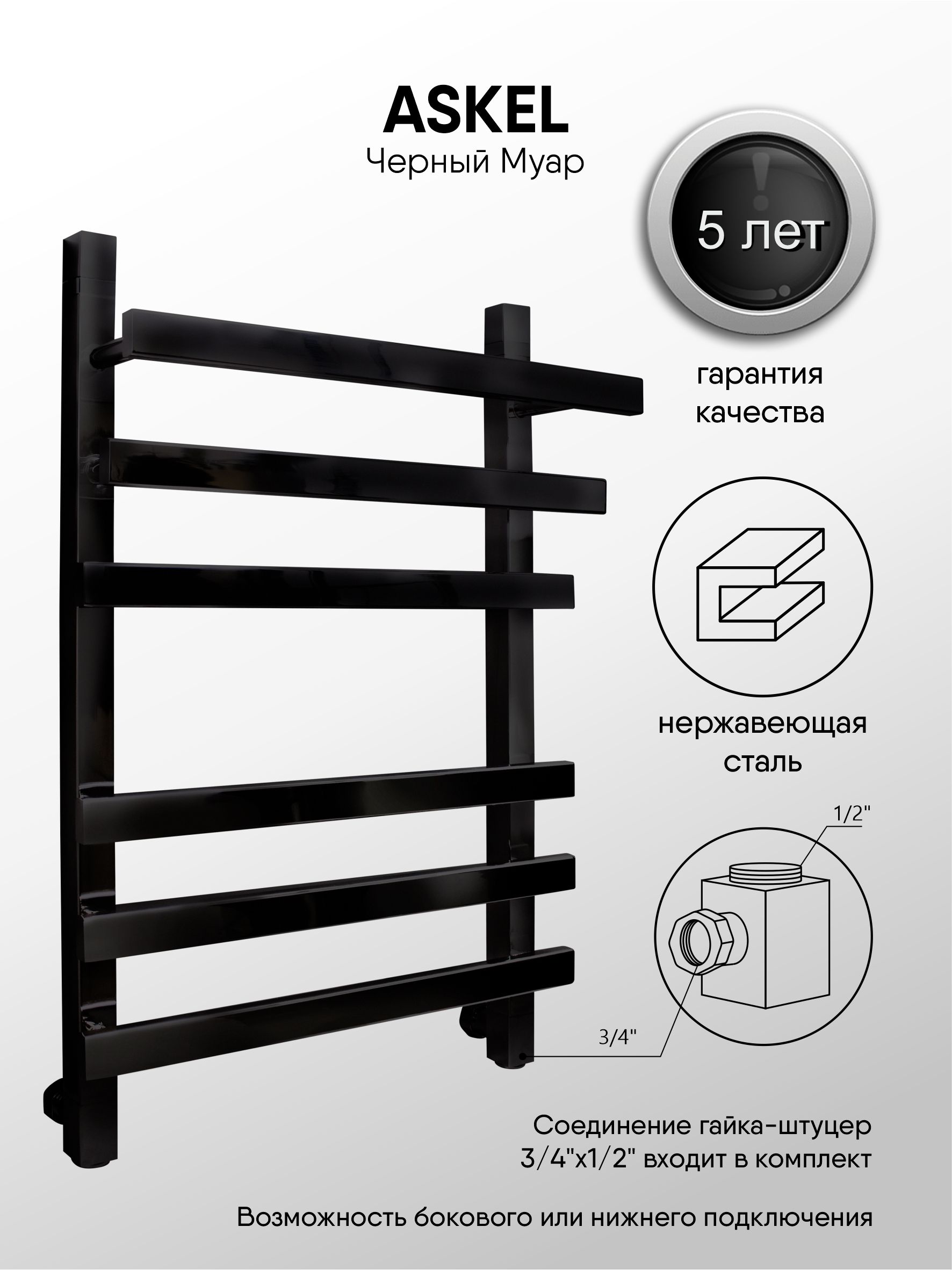Он не только быстро высушит ваши полотенца, но и обеспечит комфортную температуру в ванной. Выполнен в цвете чёрный муар.