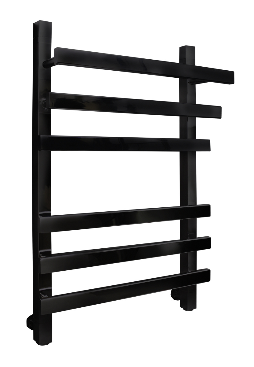 Плоские перекладины, расположенные каскадом, обеспечивают эффективный нагрев и удобное размещение полотенец.