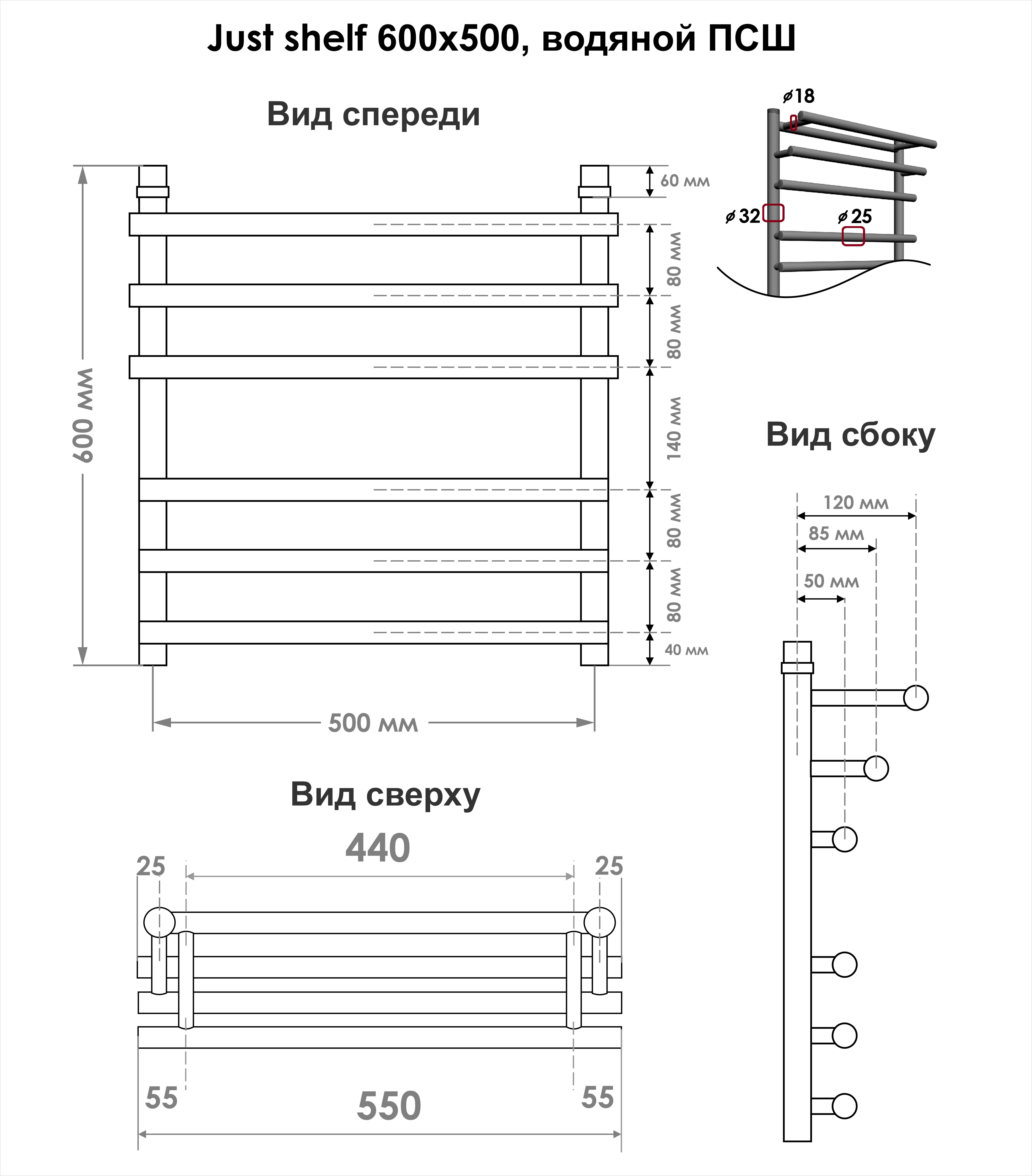 Полотенцесушитель водяной INDIGO Just Shelf 600х500 (ВхШ) – стиль и функциональность для вашей ванной.