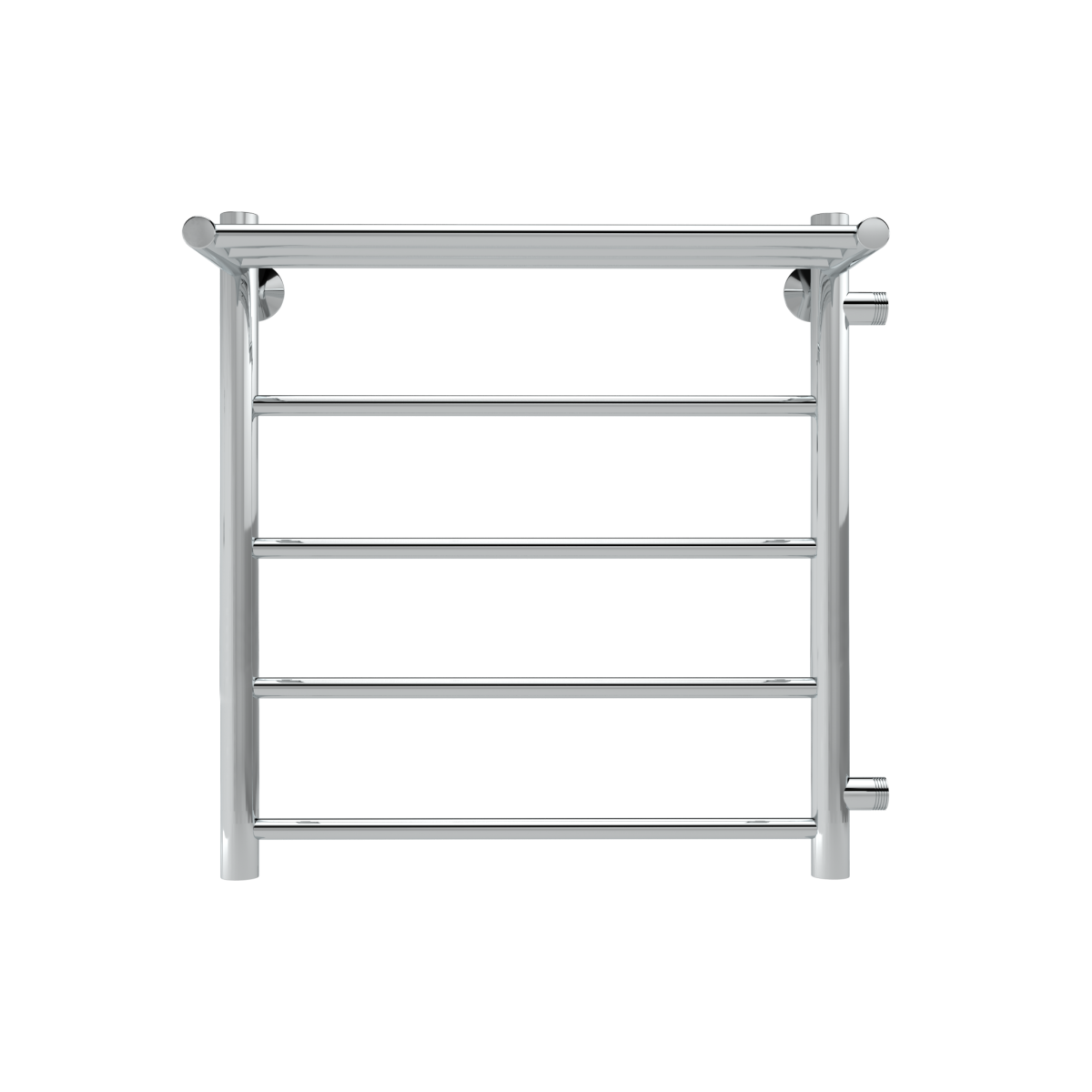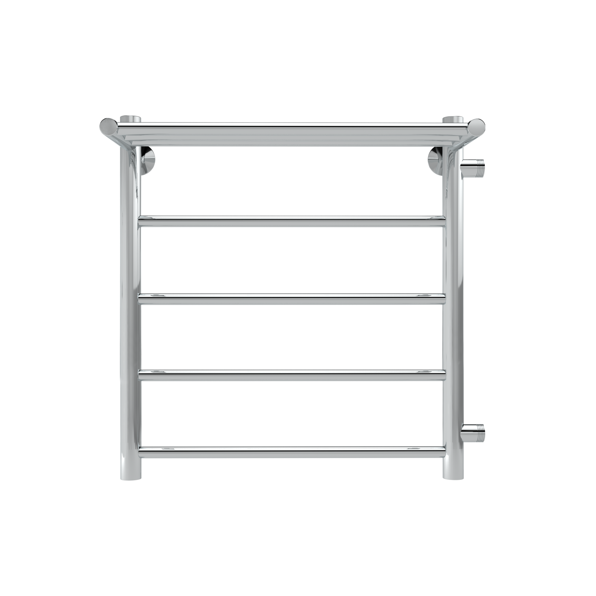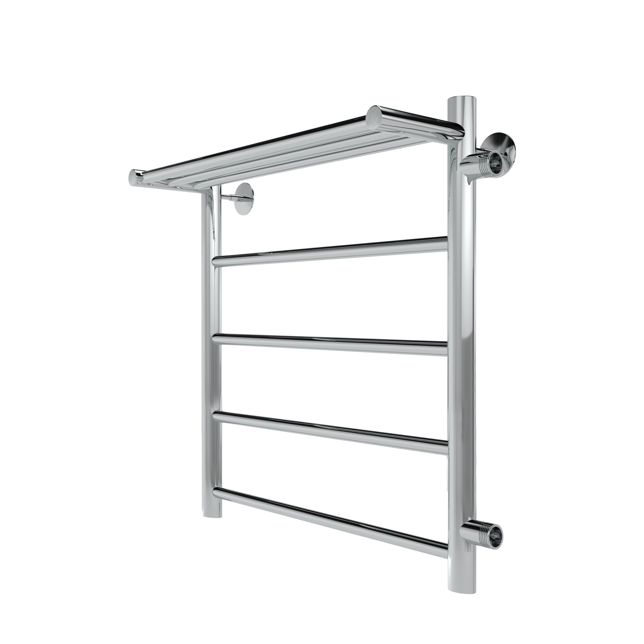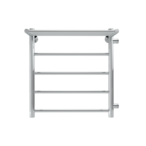 Полотенцесушитель водяной INDIGO Line с полкой с боковым подключением в размере 600х500 (ВхШ) выполнен из нержавеющей стали.