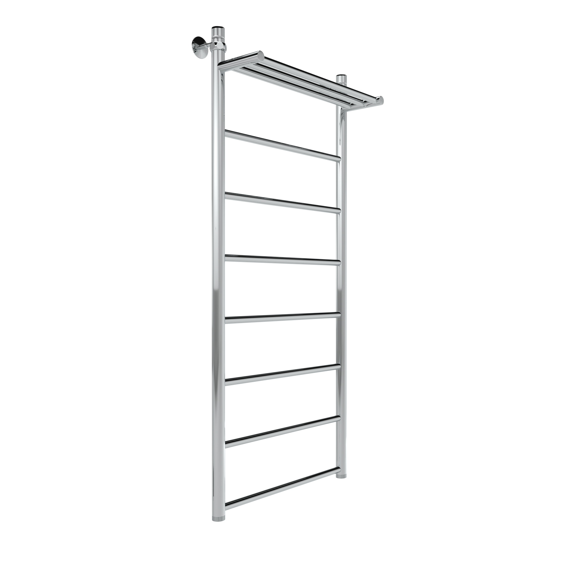 Конструкция "лесенка" с несколькими перекладинами позволяет эффективно разместить большое количество полотенец и белья. Полочка добавляет удобства для хранения ванных принадлежностей.