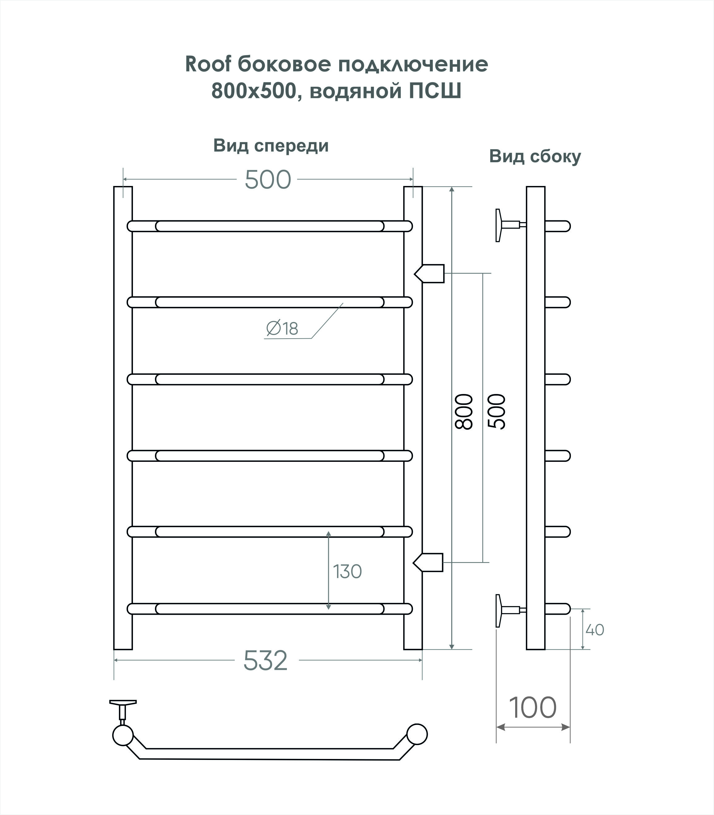Полотенцесушитель водяной INDIGO Roof с боковым подключением в размере 800х500 (ВхШ)  выполнен из нержавеющей стали.