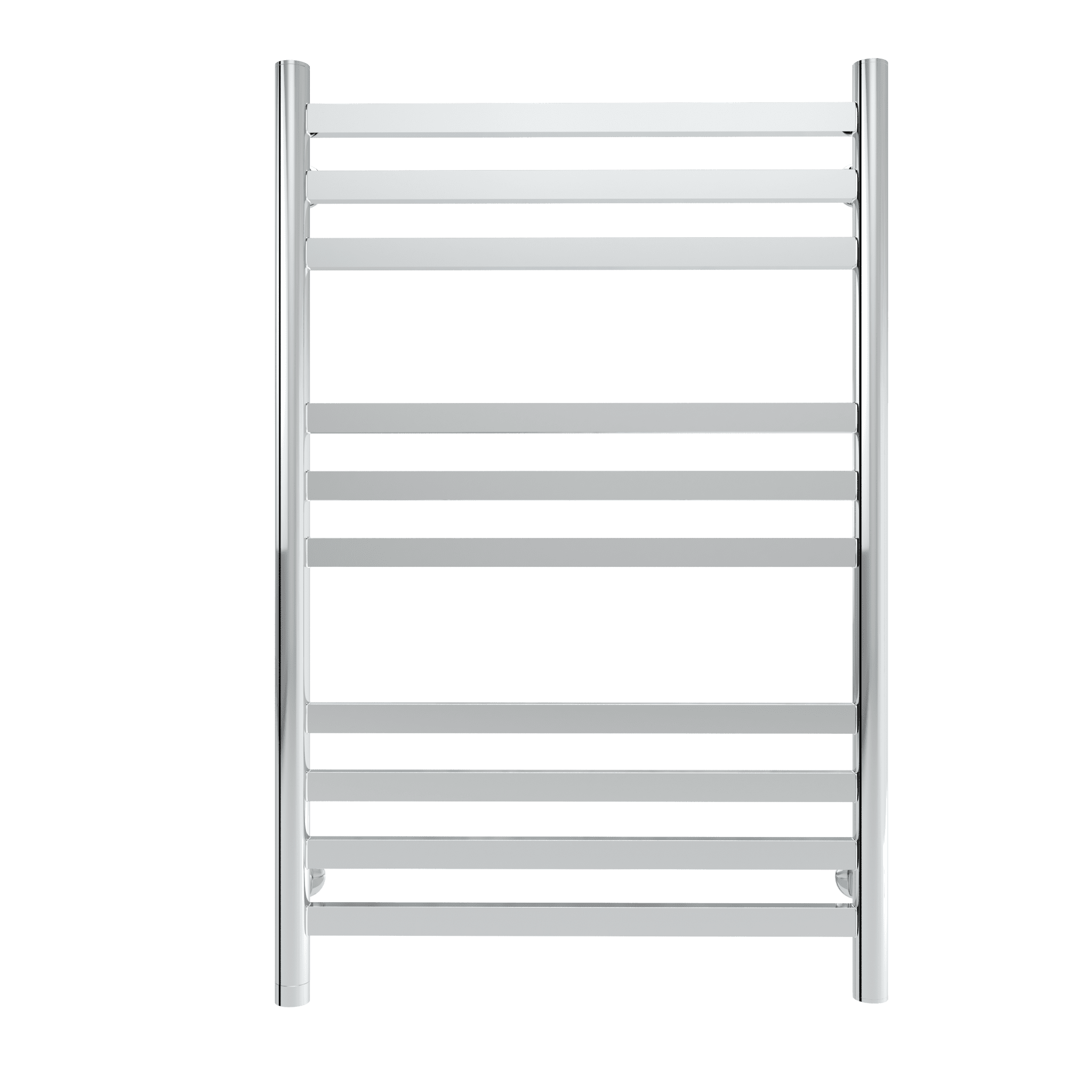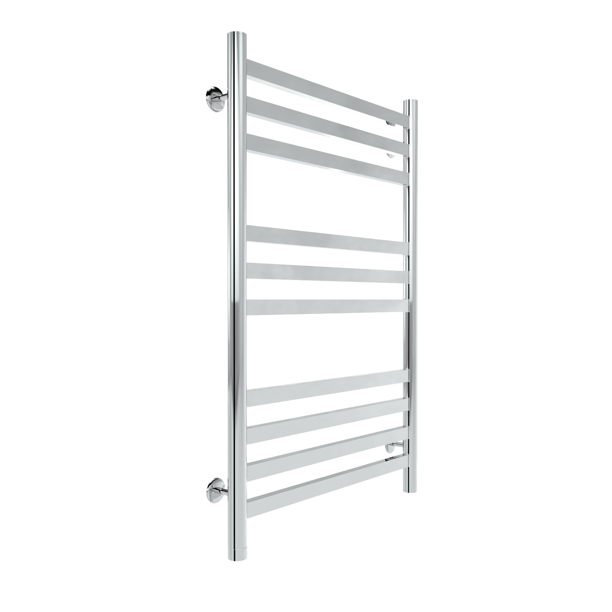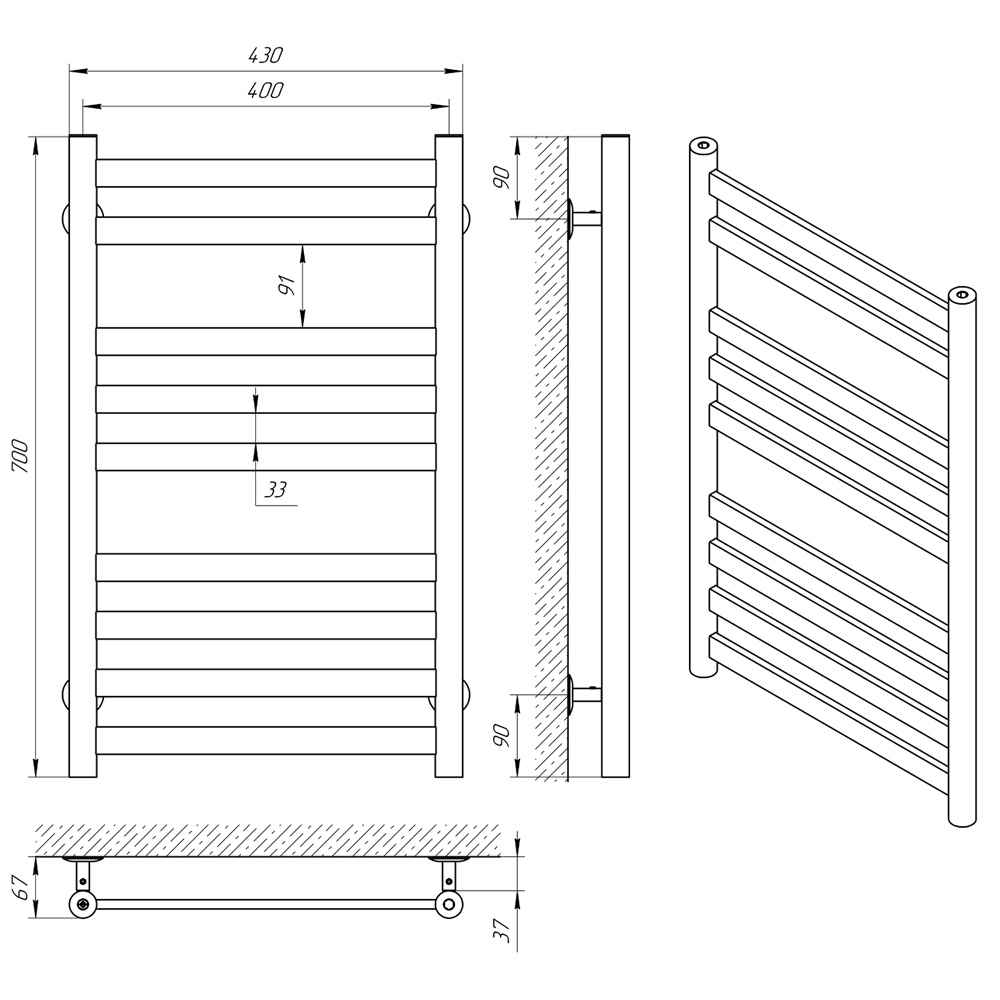 Дизайн сочетает в себе минимализм и практичность: круглые коллекторы гармонично сочетаются с плоскими перекладинами, обеспечивая эффективный нагрев полотенец и белья.