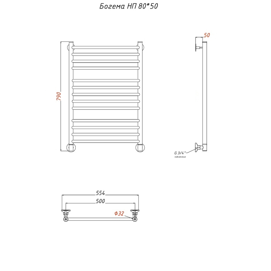 —Полотенцесушитель Тругор Богема Богема/нп8050 63х80 водяной хром