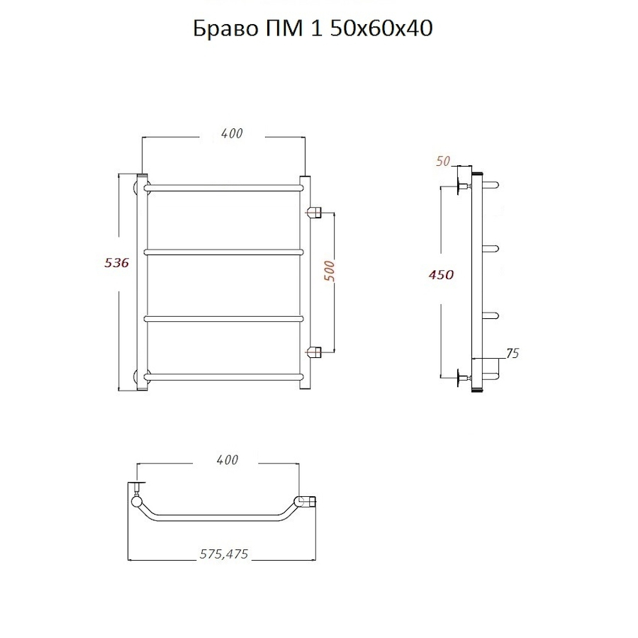 —Полотенцесушитель Тругор Браво Браво1/ПМ506040 43х60 водяной хром