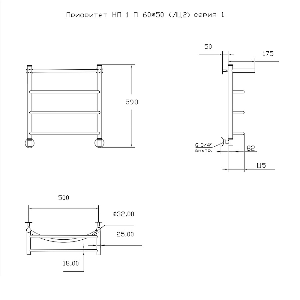 —Полотенцесушитель Тругор Приоритет Приоритет1/нп6050П 53х60 водяной хром