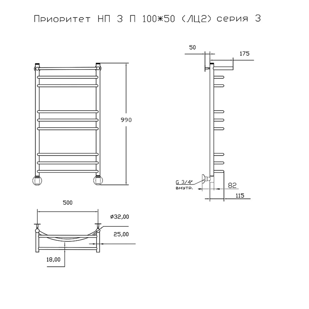 —Полотенцесушитель Тругор Приоритет Приоритет3/нп10050П 53х100 водяной хром