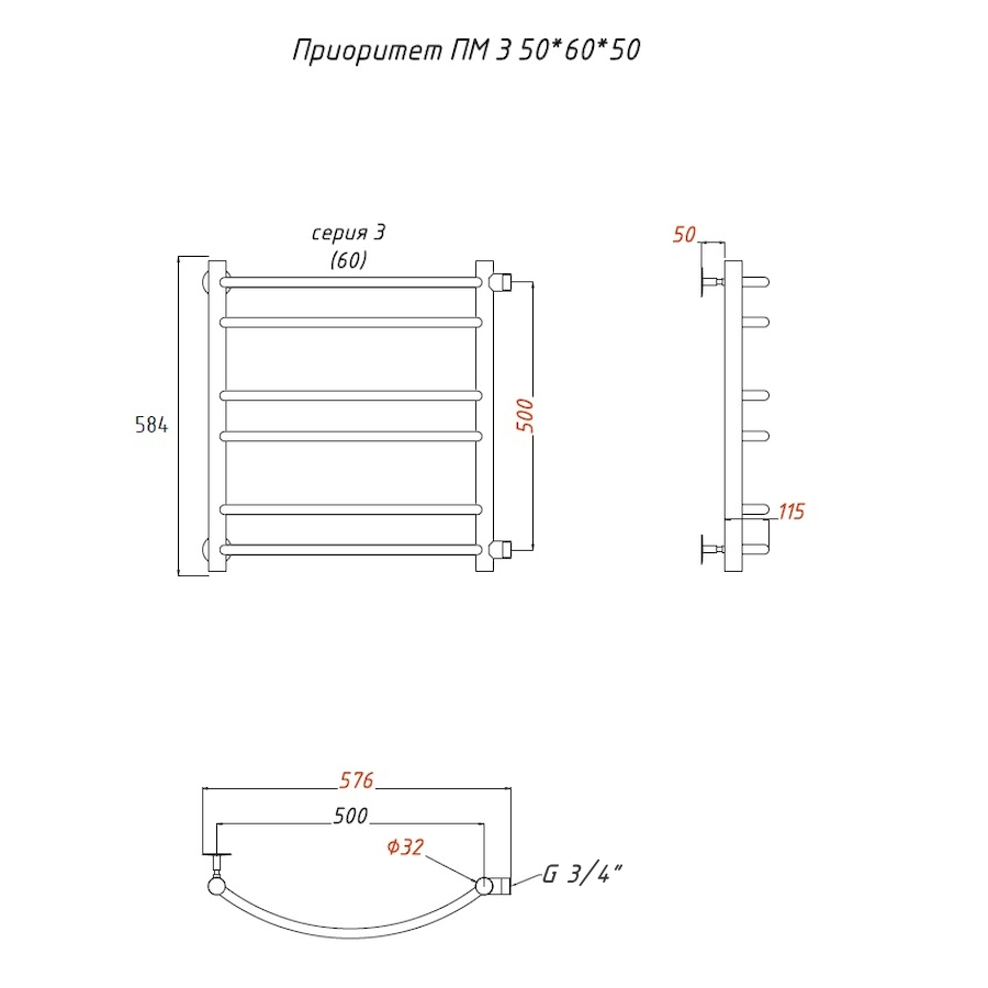 —Полотенцесушитель Тругор Приоритет Приоритет3/ПМ506050 53х60 водяной хром