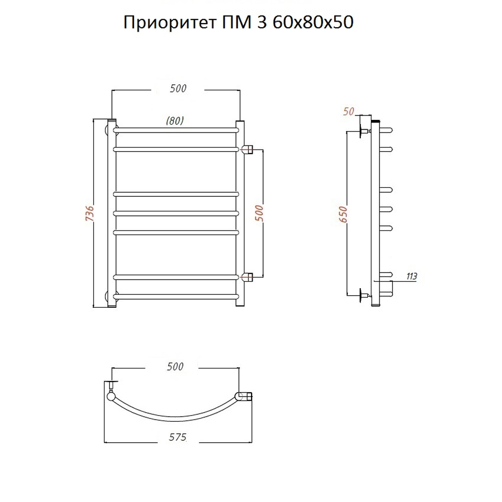 Полотенцесушитель Тругор Приоритет Приоритет3/ПМ608050 58х74 водяной хром