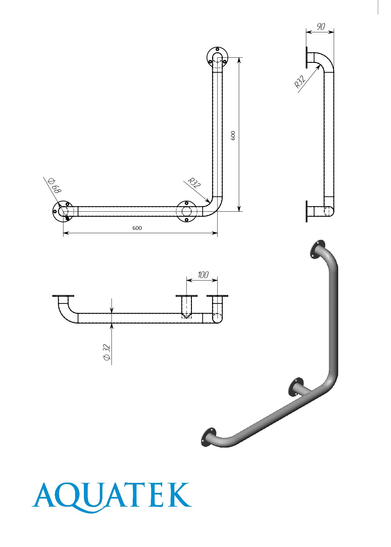 o    Материал: нержавеющая сталь AISI 304, диаметр трубы 32х1,5 мм. Толщина металла и диаметр трубы поручня делают его очень прочным;