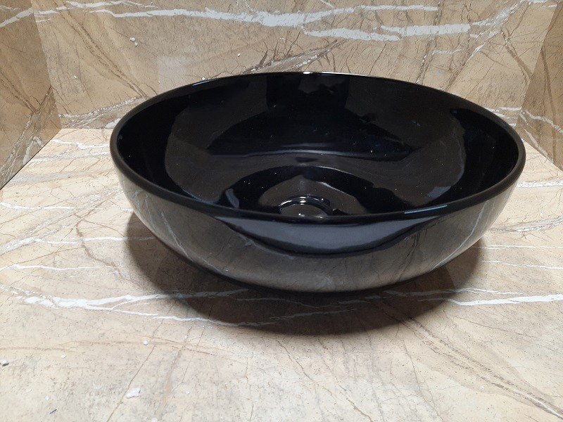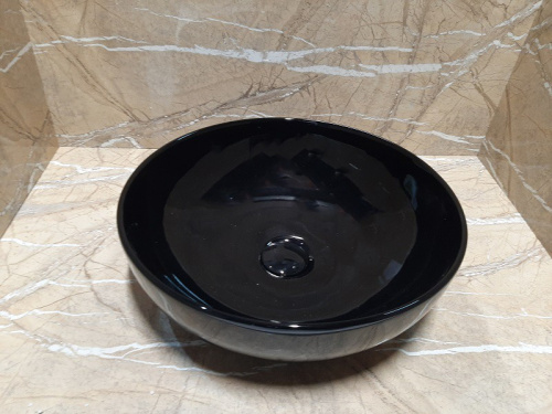 —Раковина из санфаянса CeramaLux 104B-1 42х42 накладная цвет черный глянцевый