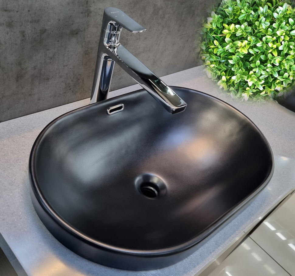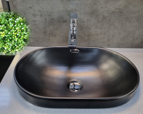 —Раковина из санфаянса CeramaLux 5006CMB 60х40 встраиваемая цвет черный матовый
