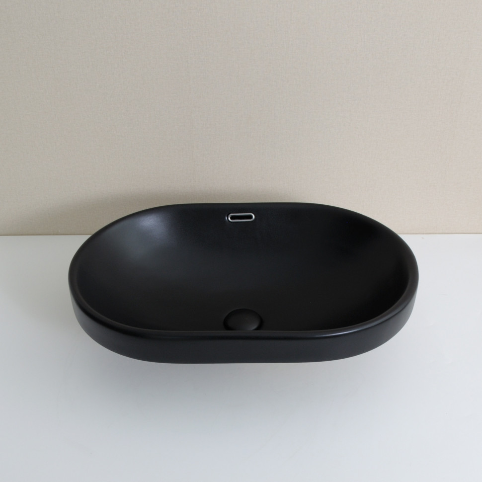 Раковина из санфаянса CeramaLux 5006CMB 60х40 встраиваемая цвет черный матовый