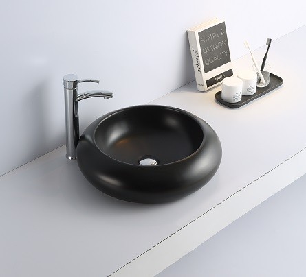 —Раковина из санфаянса CeramaLux 7031AMB 46х46 накладная цвет черный матовый