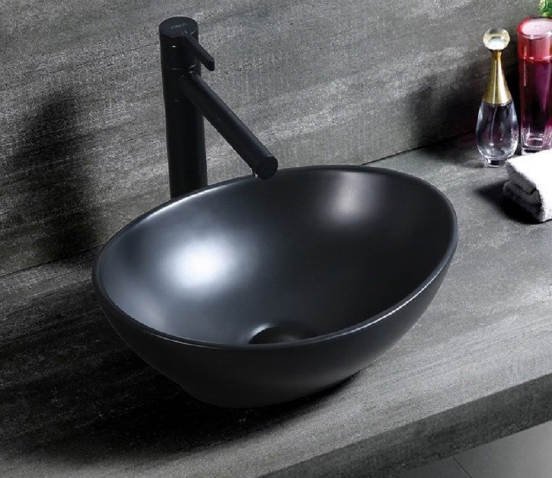 —Раковина из санфаянса CeramaLux 7138MB 41х34 накладная цвет черный матовый