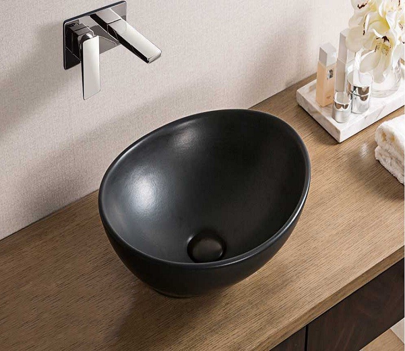 Раковина из санфаянса CeramaLux 7138MB 41х34 накладная цвет черный матовый
