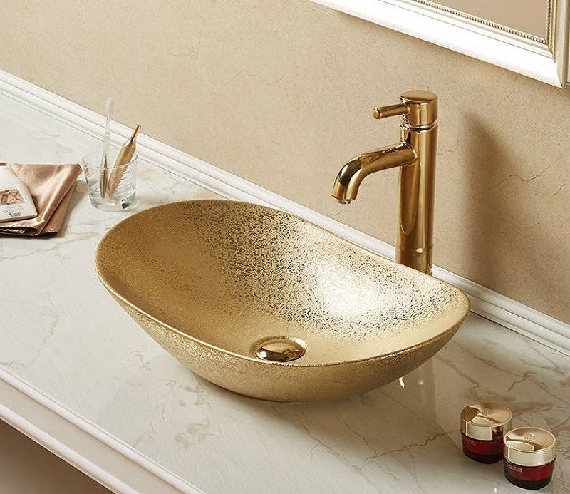 —Раковина из санфаянса CeramaLux 7811ASJ 62х36 накладная цвет золото