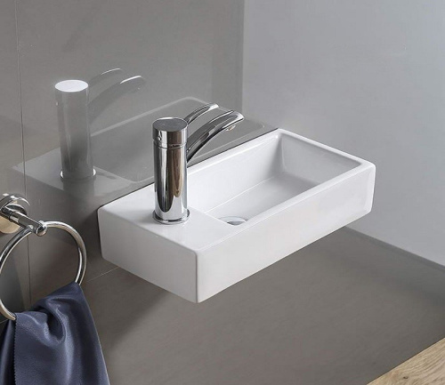 Раковина из санфаянса CeramaLux 9048DR 41х20 подвесная цвет белый 1 отверстие под смеситель