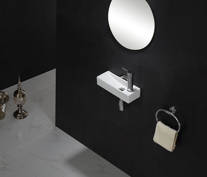 —Раковина из санфаянса CeramaLux 9048FL 38х15 подвесная цвет белый 1 отверстие под смеситель
