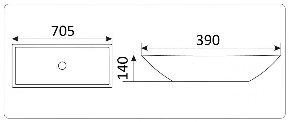—Раковина из санфаянса CeramaLux 9122 71х39 накладная цвет белый 1 отверстие под смеситель