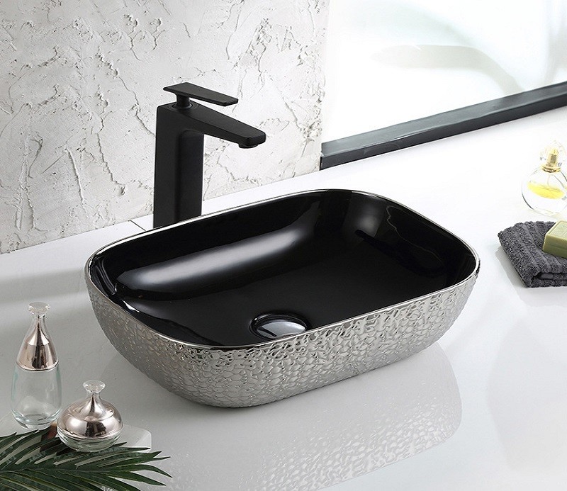 —Раковина из санфаянса CeramaLux D1333H020 46х33 накладная цвет черный