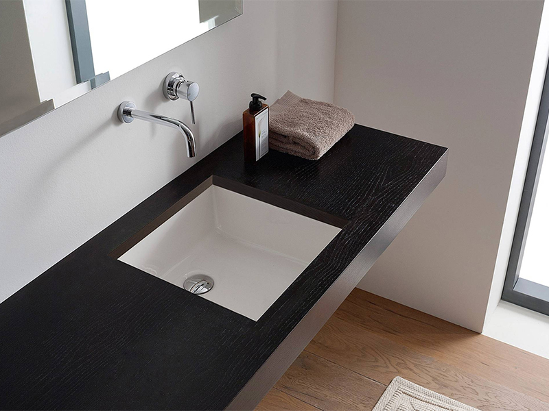 Технические детали: Встраиваемая раковина под столешницу с переливом, без отверстия под смеситель, идеально сочетает в себе функциональность и эстетику.