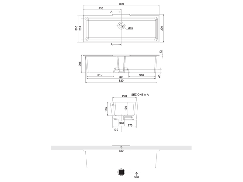 Благодаря своим размерам - 87 ширина, 32 глубина и 20,5 высота, эта раковина является большой, удобной и практичной. Она обеспечивает достаточное пространство для мытья рук и поддерживает высокий уровень комфорта даже в самые оживленные моменты.