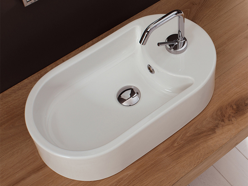 Дизайн раковины Scarabeo прост и современен. У нее овальная форма и глубокая чаша, что обеспечивает комфортное использование и эстетическое удовлетворение. Ее минималистичная стилистика делает раковину универсальной и способной гармонично сочетаться с любым декором и стилем ванной комнаты.