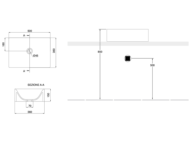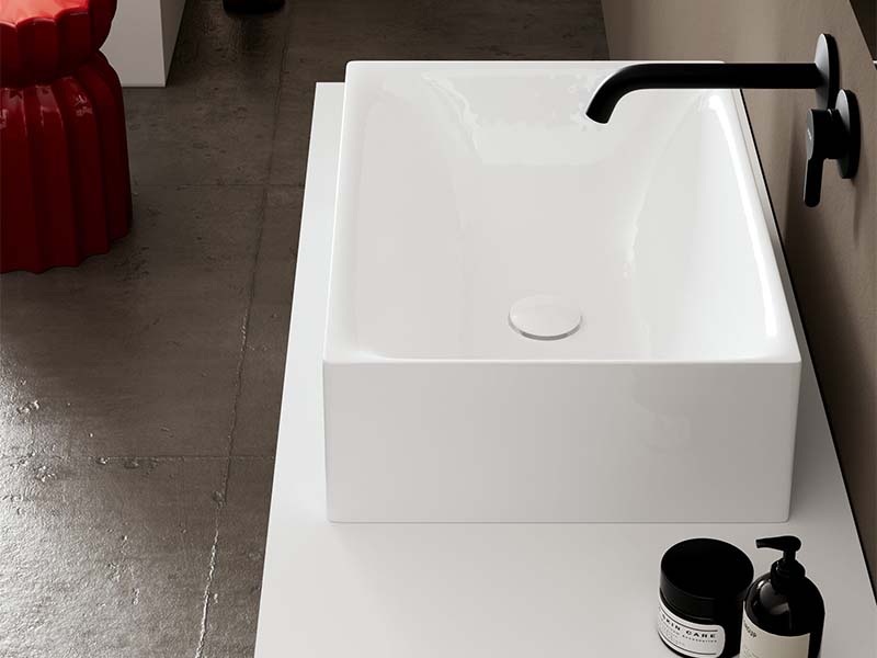 SCARABEO SKINNY 5413 Раковина накладная без отверстия под смеситель, без слива-перелива. Размеры: 50x36x15h см. Цвет White.
