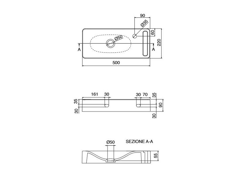 Раковина подвесная Scarabeo HUNG 1512, без перелива, с одним отверстием под смеситель, с полотенцедержателем справа, крепления в комплекте, размер 50х22х9 см, цвет белый глянцевый.