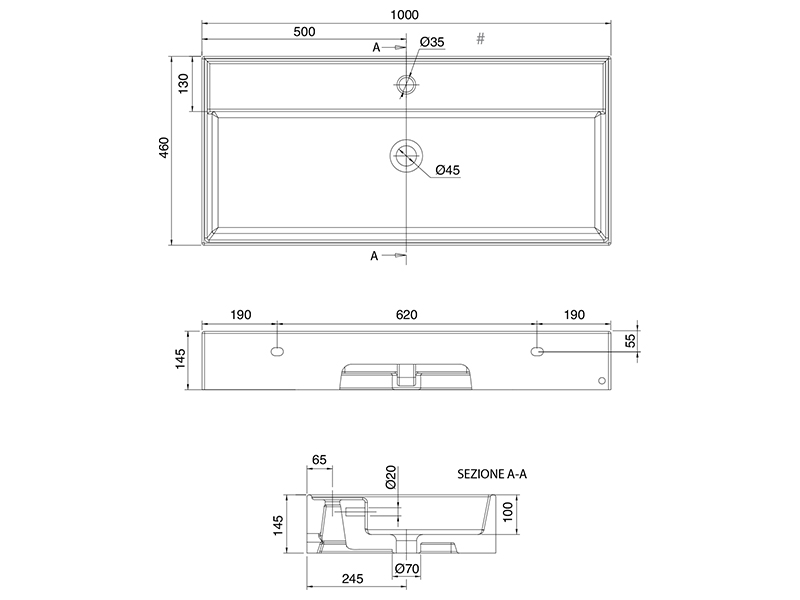 SCARABEO TEOREMA 2.0 5106/R-100A Раковина накладная или подвесная с одним отверстием под смеситель, с сливом - переливом. Размеры: 100x46x14,5h см. Настенные крепления входят в комплект. Цвет White.
