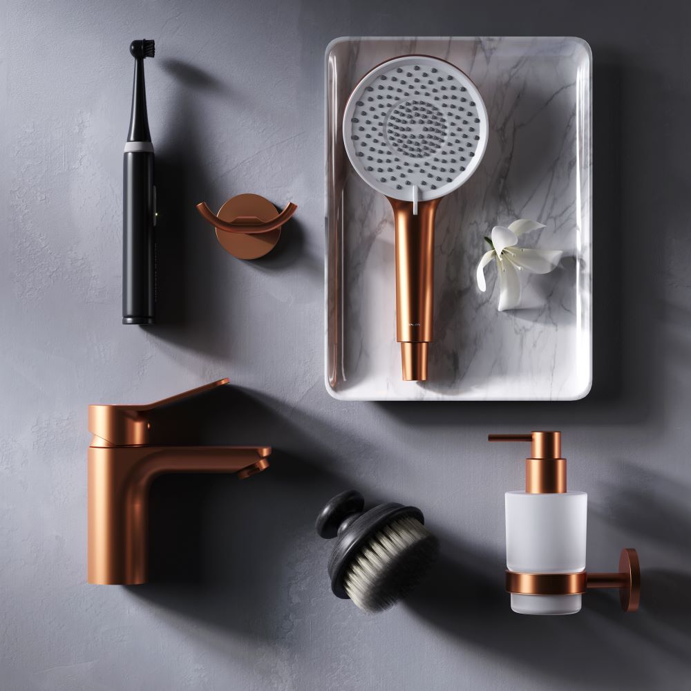 Настоящее произведение ювелирного искусства в вашей ванной комнате: нежный оттенок розового золота получается методом вакуумного напыления смеси 24-каратного золота  серебра и меди  в процессе которого микрочастицы сплава образуют стойкое соединений с латунной основой.