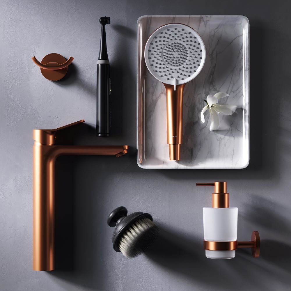Настоящее произведение ювелирного искусства в вашей ванной комнате: нежный оттенок розового золота получается методом вакуумного напыления смеси 24-каратного золота серебра и меди в процессе которого микрочастицы сплава образуют стойкое соединений с латунной основой.