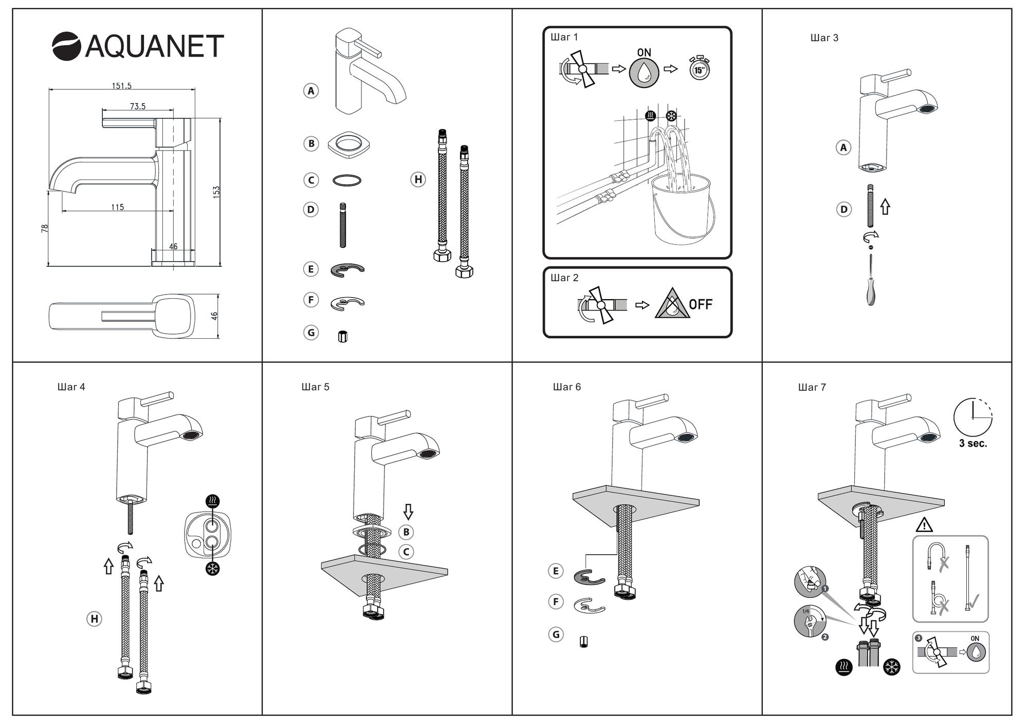 —Смеситель Aquanet Minima AF130-10C на раковину хром без термостата