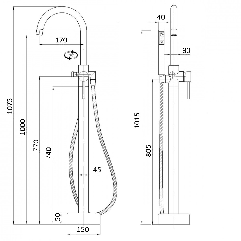 —Смеситель BOCH MANN BRAIES Brush nickel BM8922 напольный никель матовый