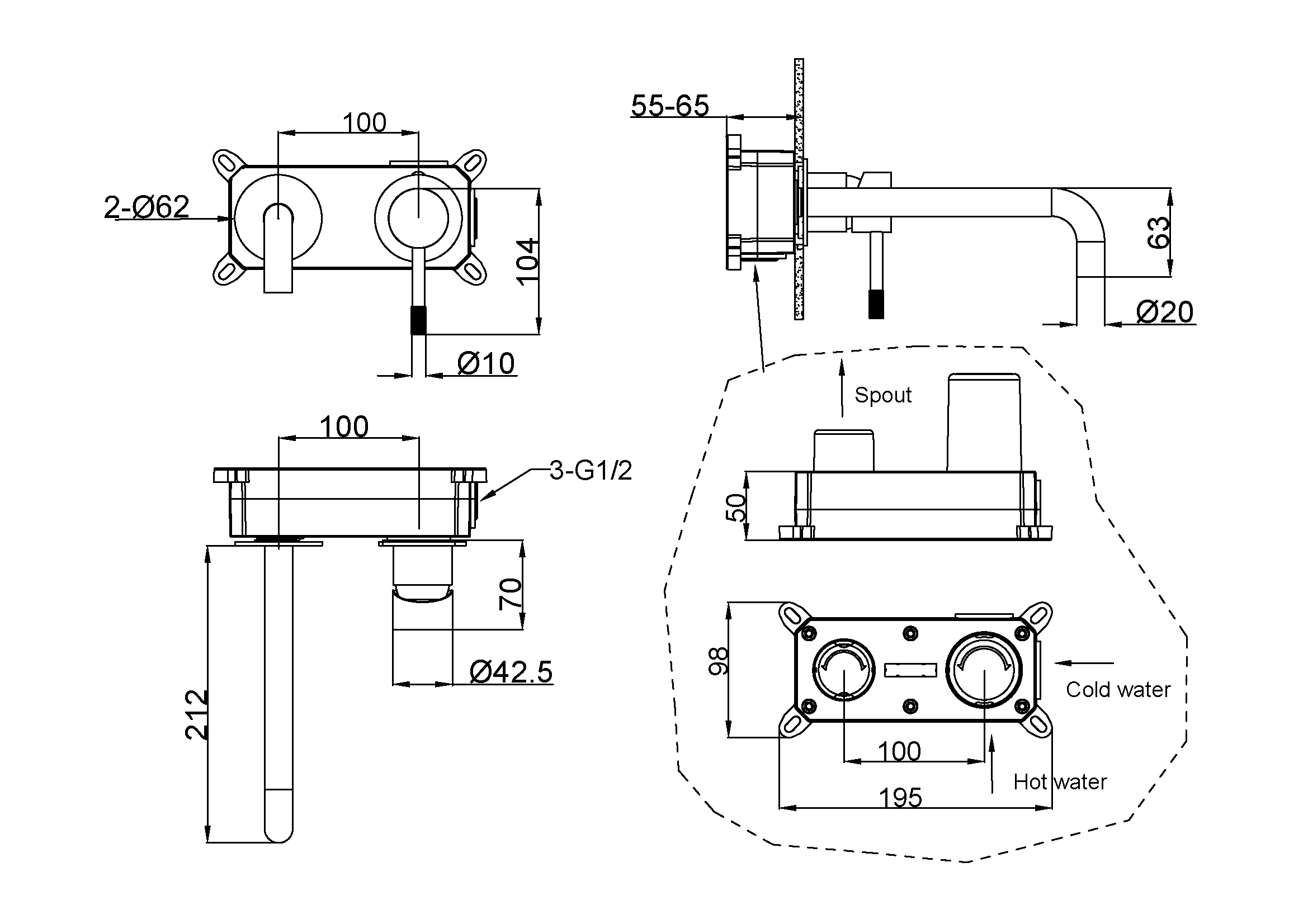Смеситель Boheme Uno 465-CR встраиваемый хром