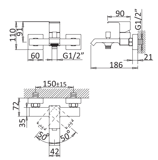 Смеситель Cezares PORTA PORTA-VM-01 настенный хром