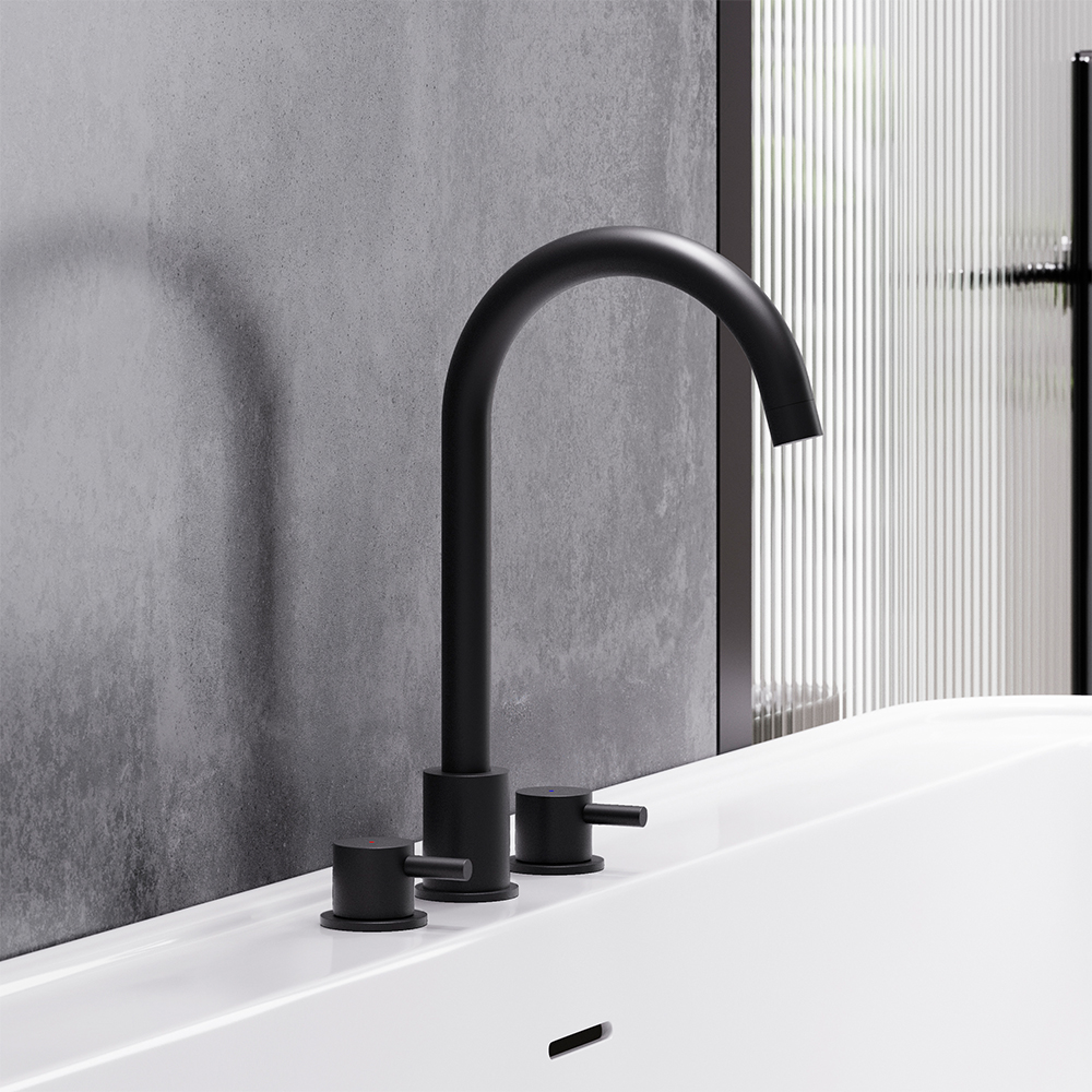 Смеситель для раковины состоит из трех секций: температура воды регулируется отдельными ручками независимо друг от друга как на ретро смесителях. Ручки в виде стика станут ярким акцентом и привнесут особую эстетику в интерьер ванной комнаты.