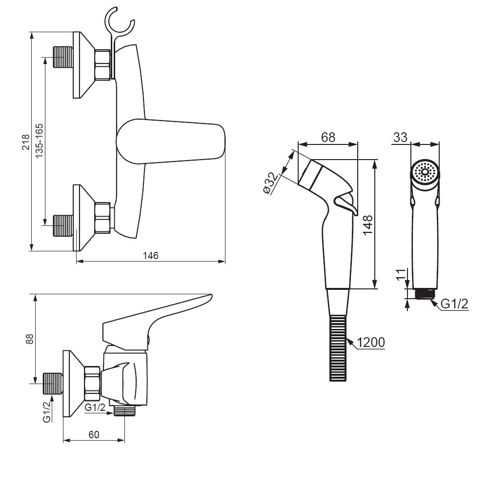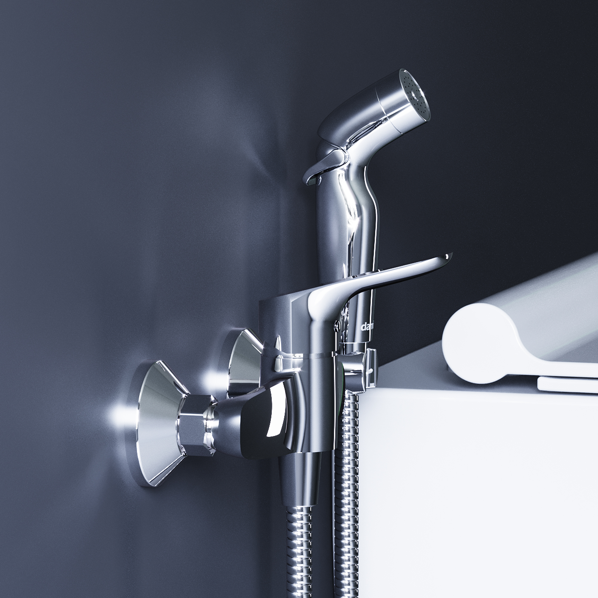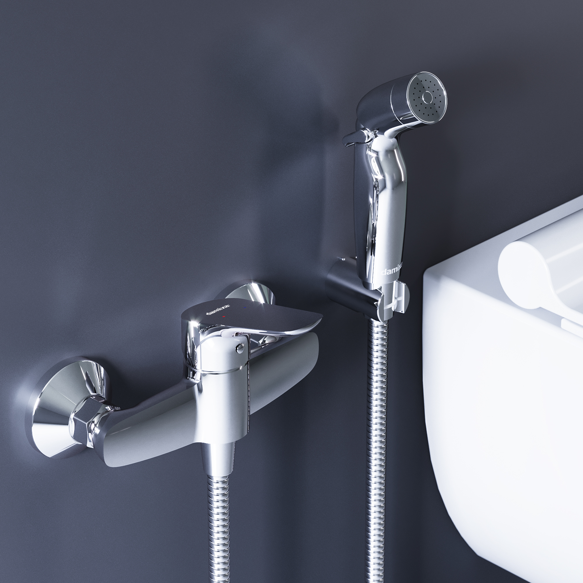 В комплекте со смесителем представлен удобный гигиенический душ: комфортный размер лейки и длина шланга.