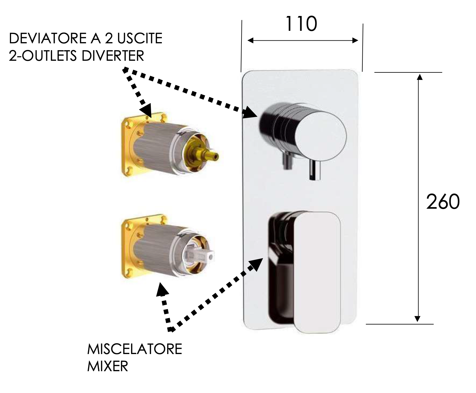 —Смеситель для душа Daniel Tiara TA612D2KB15 встраиваемый в стену черный без термостата