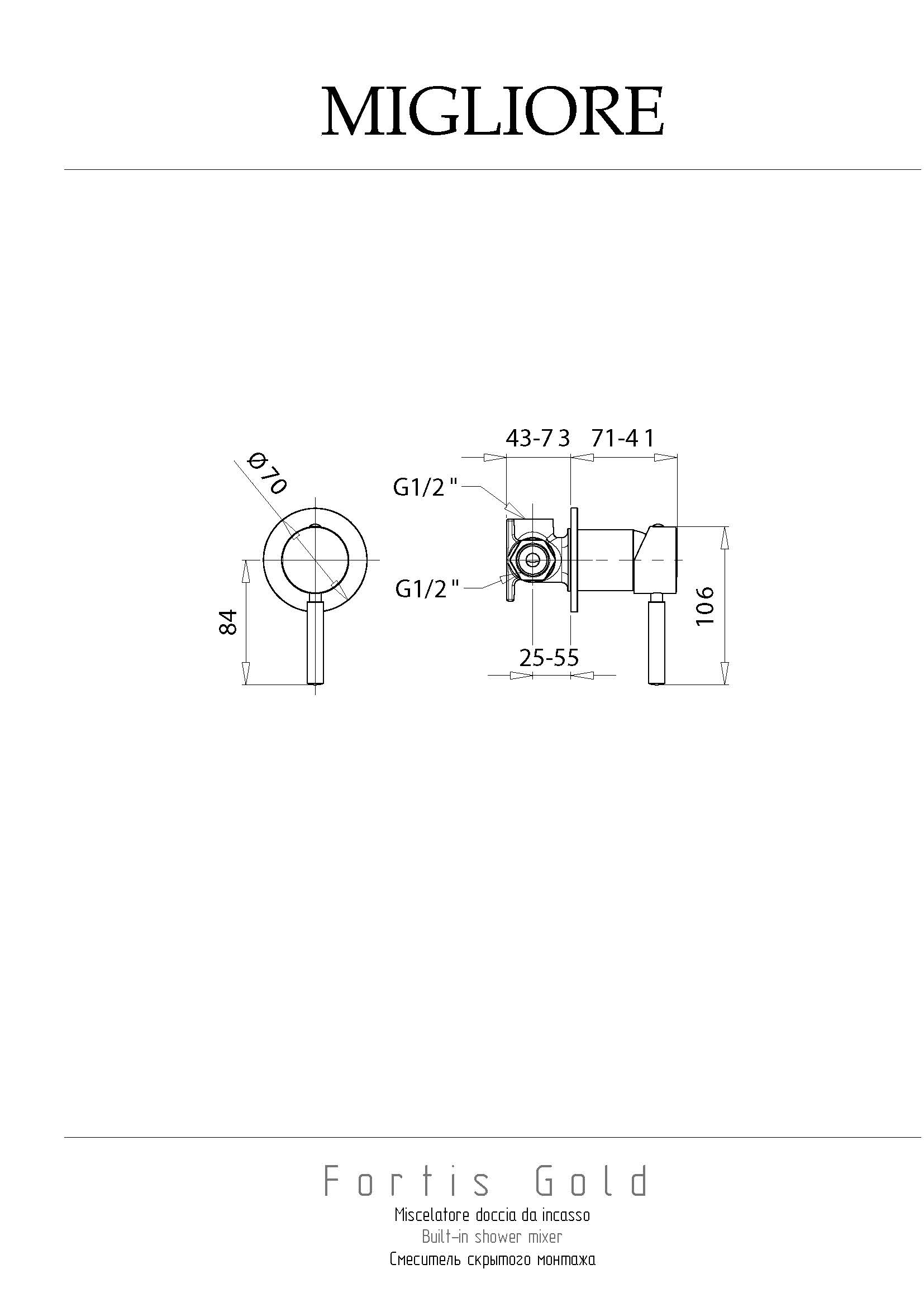 Смеситель для душа Migliore FORTIS GOLD 27985 встраиваемый в стену золото