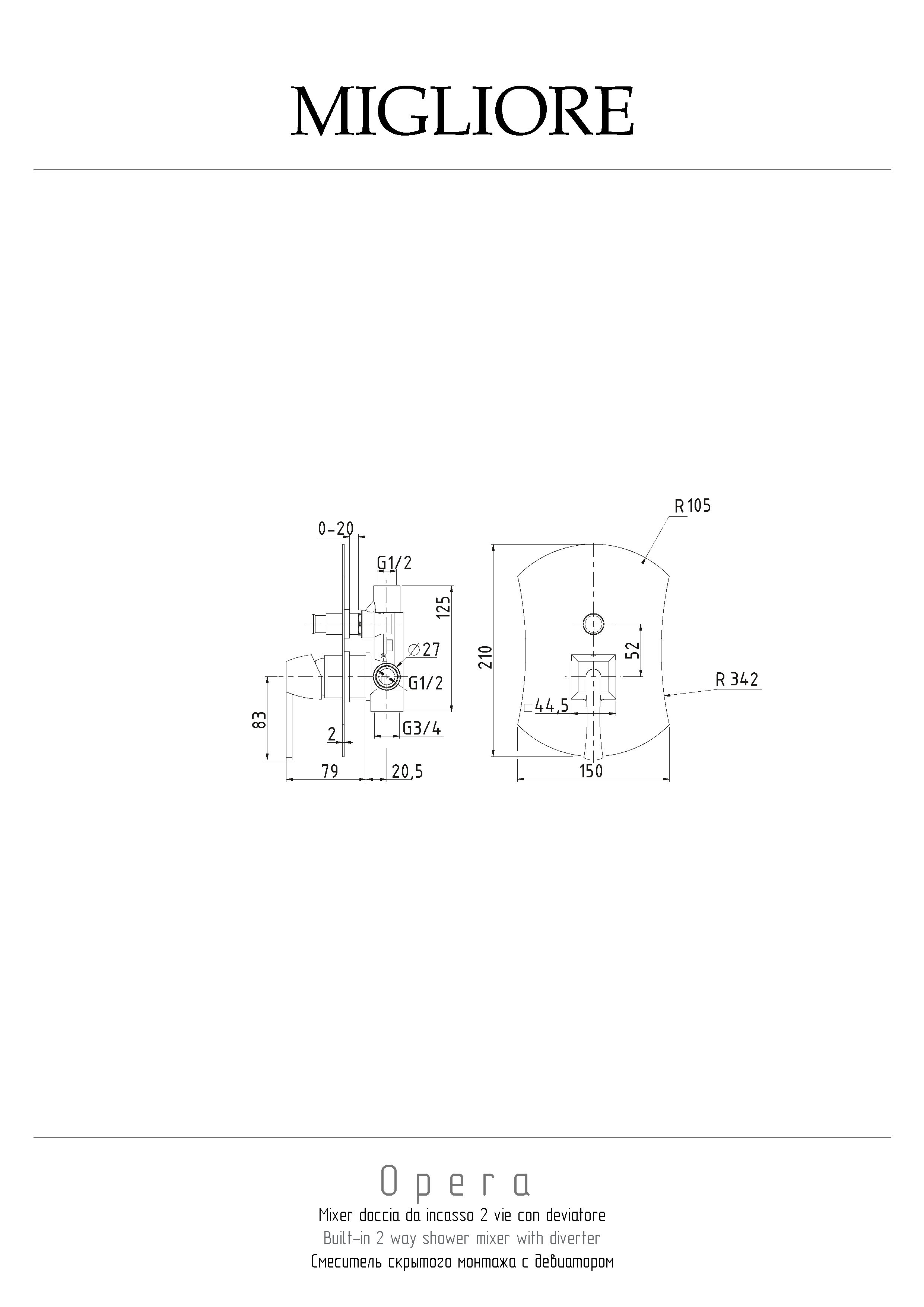 —Смеситель для душа Migliore OPERA 19046 встраиваемый в стену хром