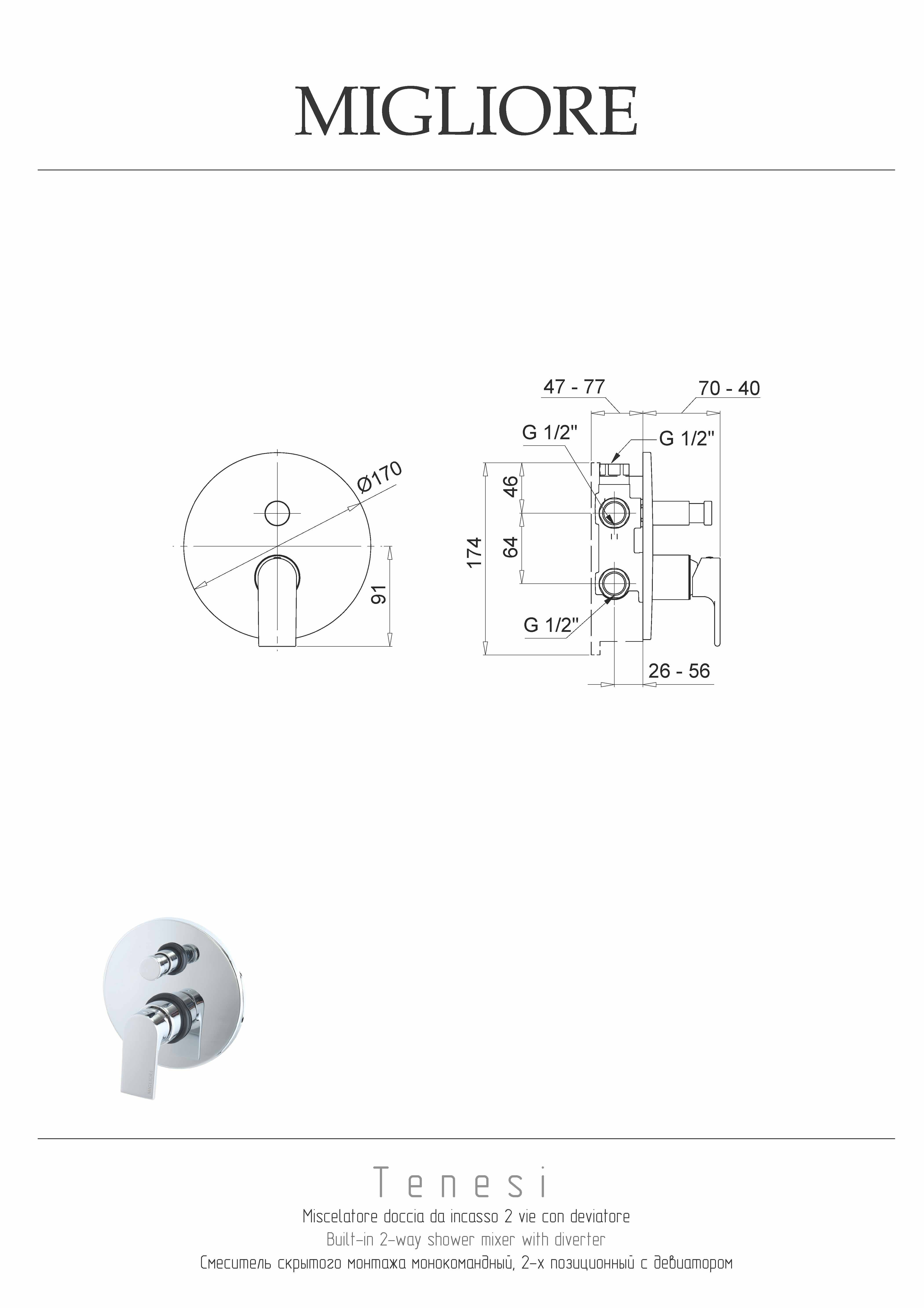 Смеситель для душа Migliore TENESI 25424 встраиваемый в стену хром