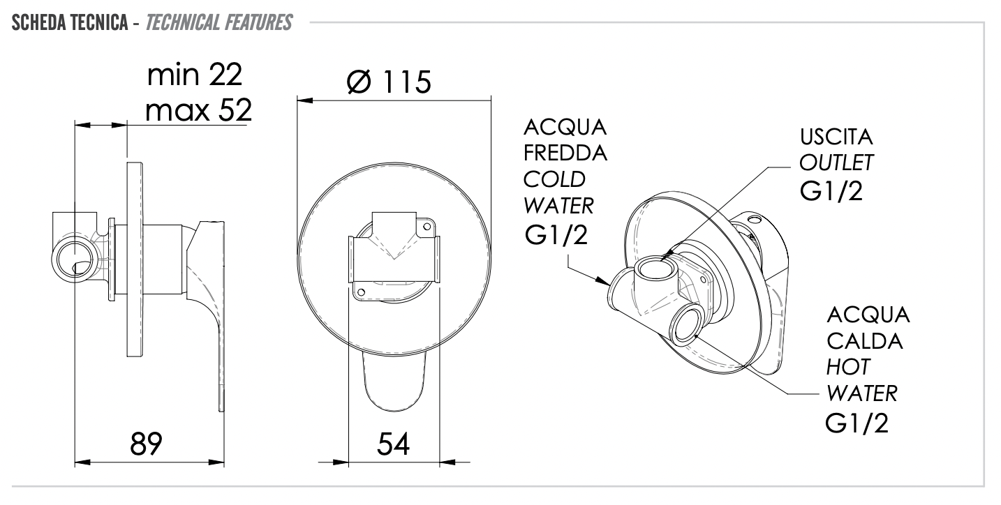 Смеситель для душа Remer Class Line L30 встраиваемый в стену хром без термостата