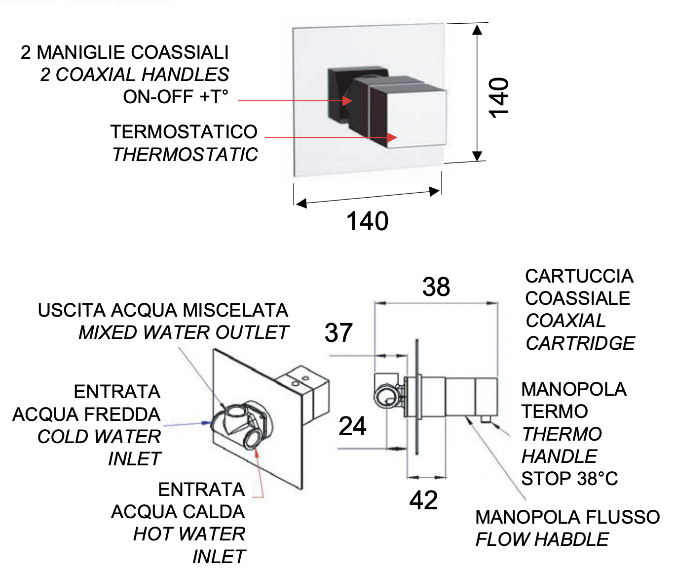 —Смеситель для душа Remer Q-Elegance QT30CFP встраиваемый в стену черный брашированный хром