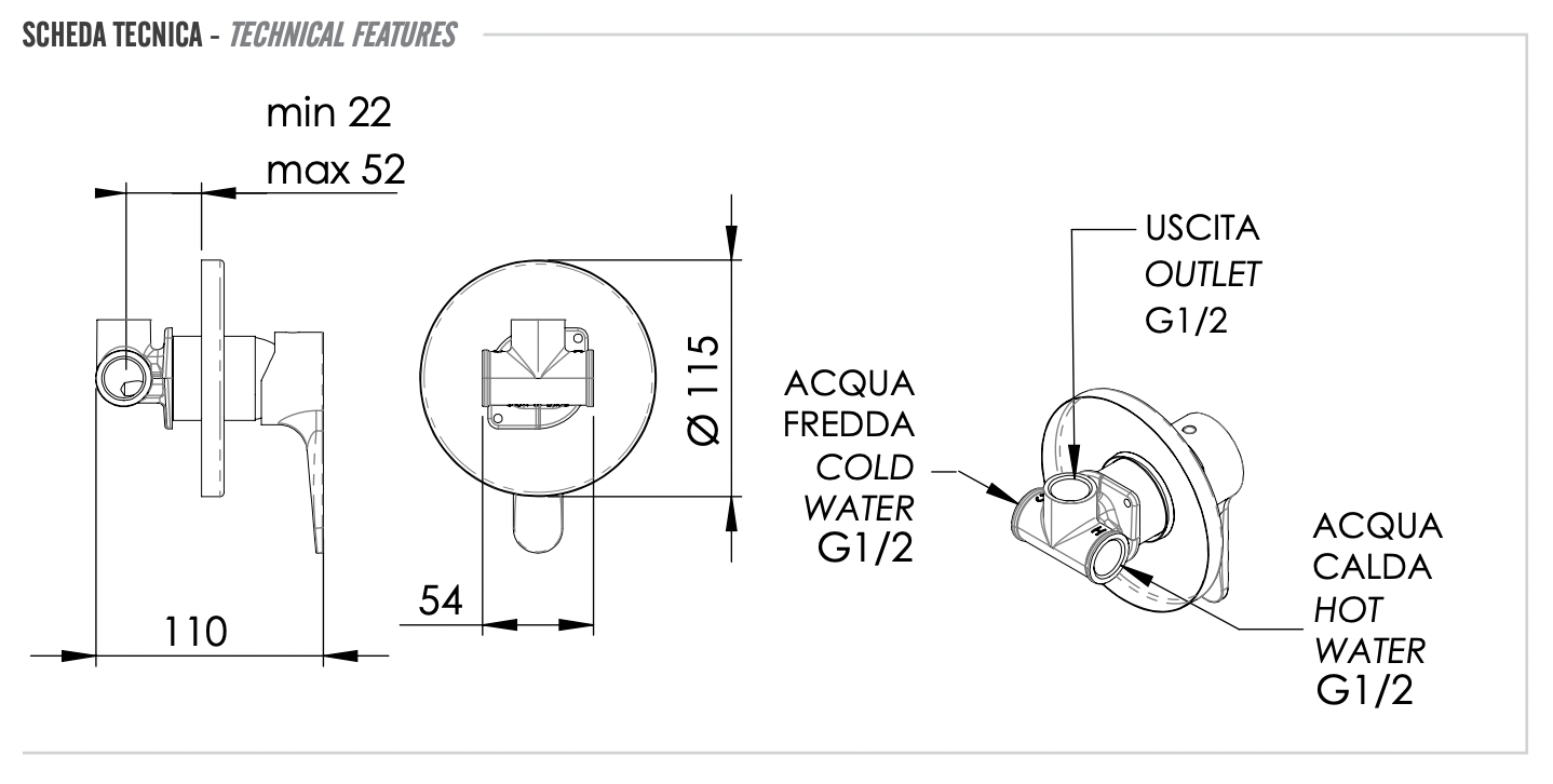 —Смеситель для душа Remer Winner W30 встраиваемый в стену хром без термостата